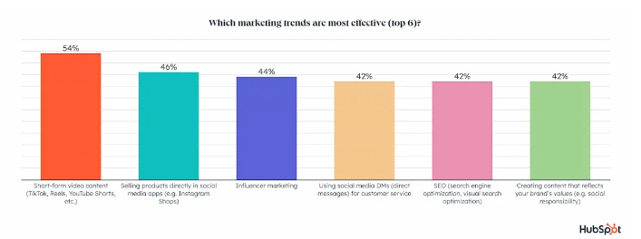 Được đo lường bởi rất nhiều thông số, trong các hoạt động marketing, video dạng ngắn hiện là hiệu quả nhất và có chỉ số ROI (Return On Investment) đứng đầu. Theo khảo sát, có tới 90% nhà tiếp thị đang sử dụng short–form video cho hoạt động tiếp thị và con số này dự kiến sẽ tiếp tục tăng. Các marketer hiện nay đang có xu hướng và kế hoạch thử nghiệm video dạng ngắn này.